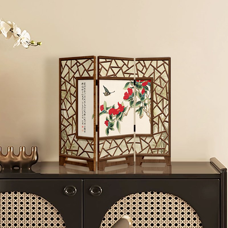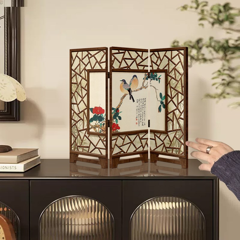 中国风桌面摆件复古电视柜玄关柜餐边柜装饰品可折叠小屏风摆台画