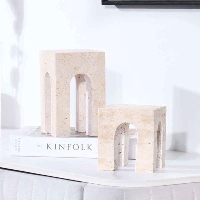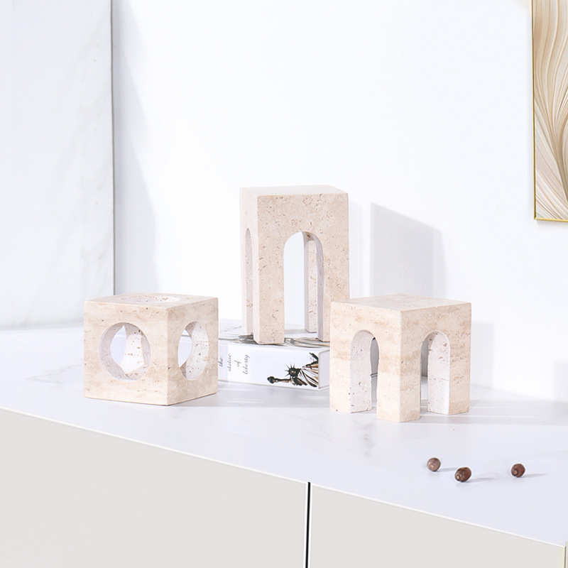 厂家直销现代极简黄洞石几何摆件样板房售楼处酒店客厅玄关桌面