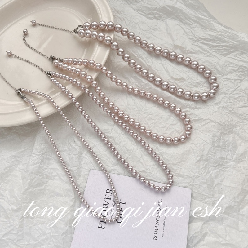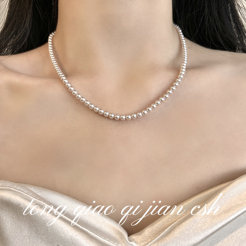法式曼塔玫瑰施家小米粒珍珠项链配饰女轻奢小众钢结构锁骨链颈链