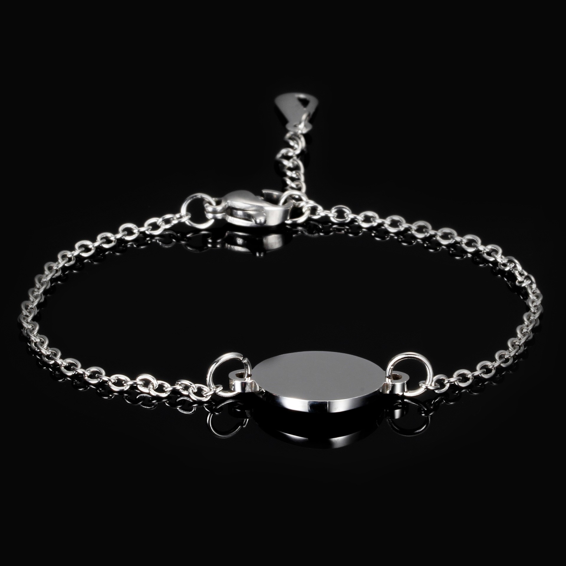 新款跨境欧美简约百搭热卖男女19MM三色圆牌手链钛钢可激光刻字Lo