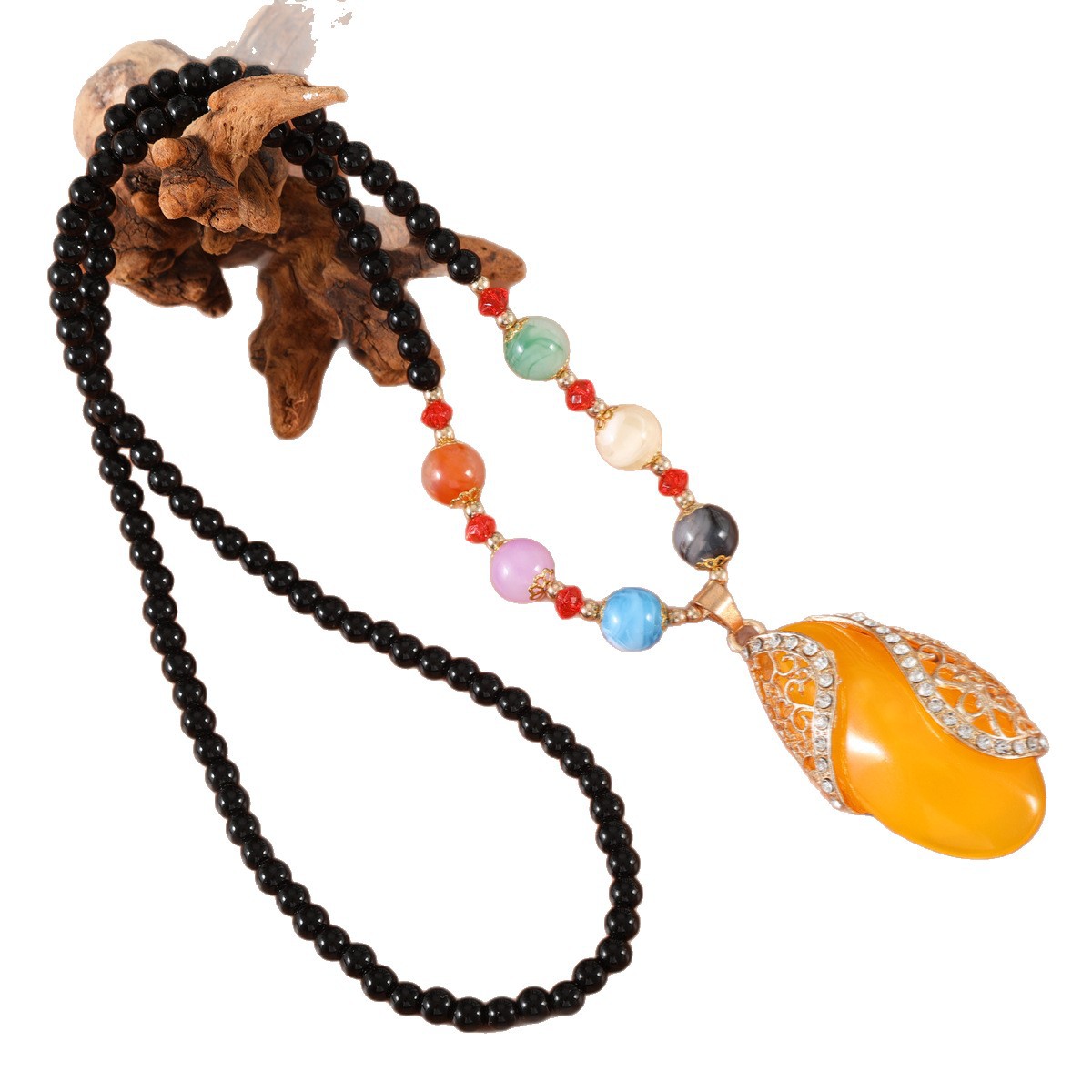 复古民族风长款项链串珠水滴蜜蜡旗袍百搭气质毛衣链挂件简约配饰