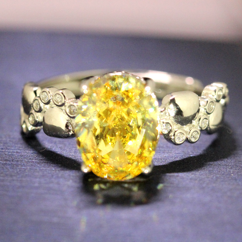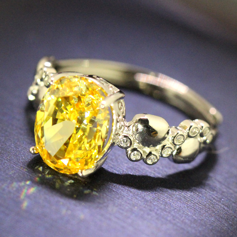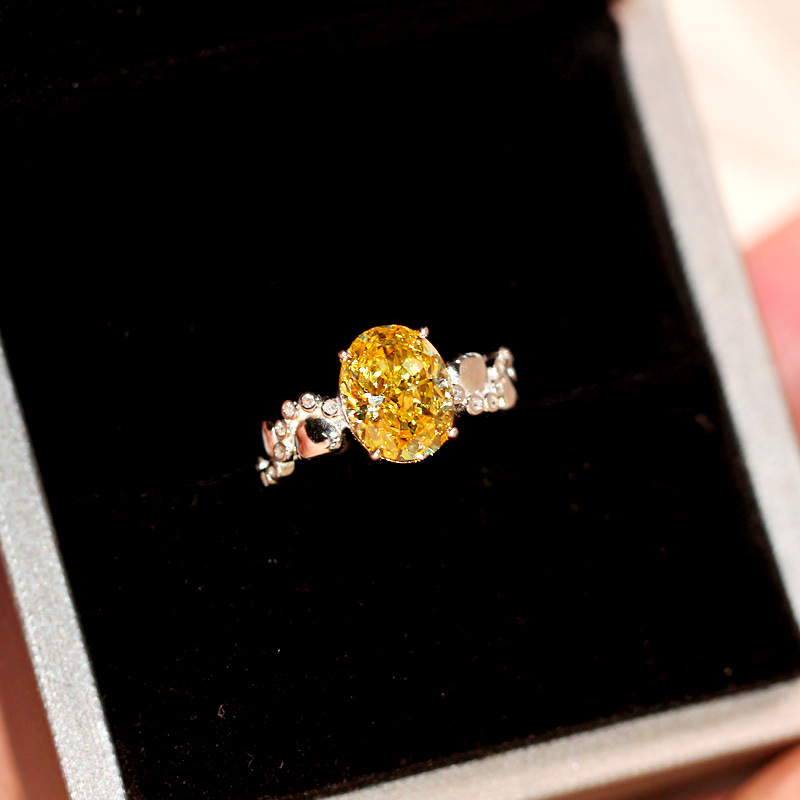 椭圆形黄钻戒指新中式贵妇钻戒方糖手工潮女甜酷风小众款925纯银