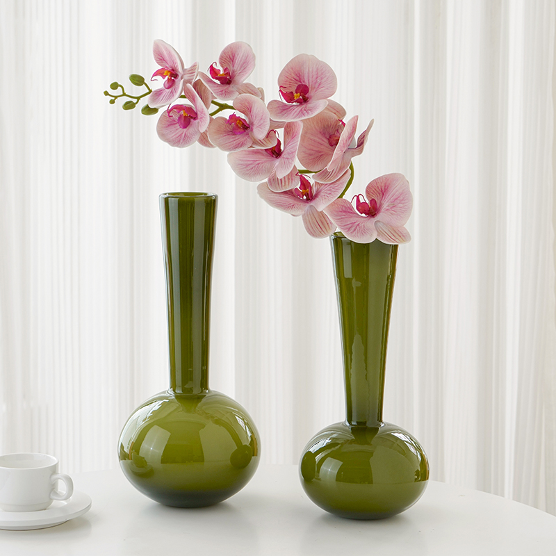 绿色琉璃花瓶家居装饰摆件简约百搭客厅桌面花艺摆设