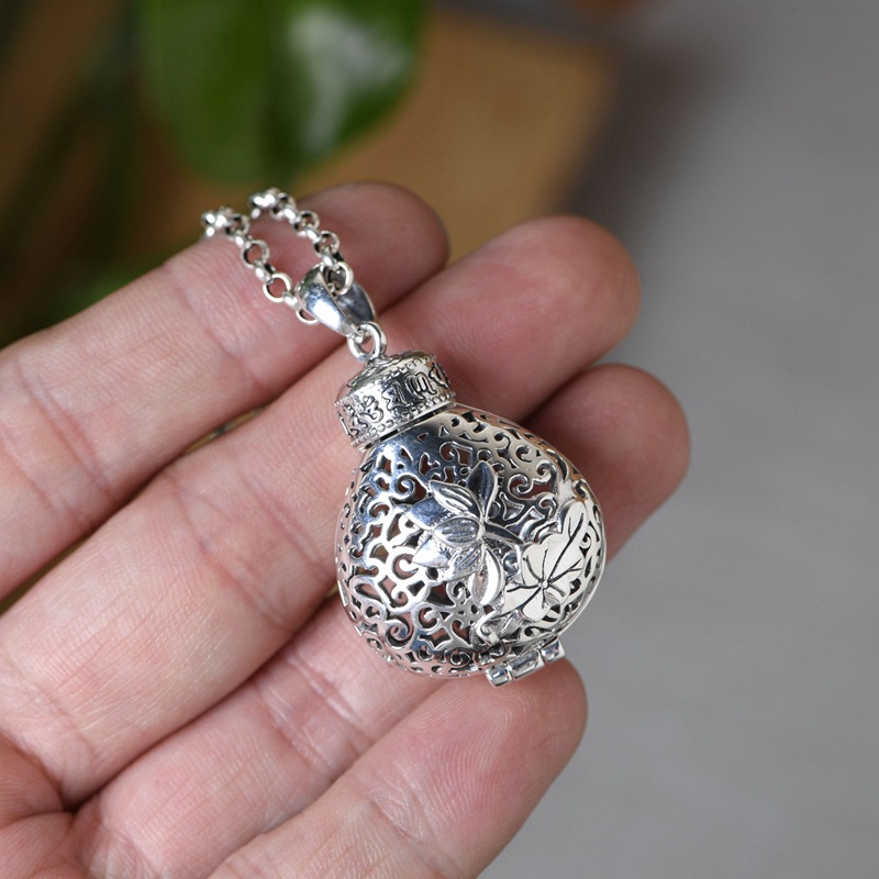纯银嘎乌盒吊坠女士小小众设计水滴花瓶莲花香囊可打开项链坠挂件