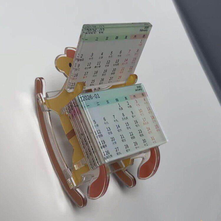 摇摇马日历摆件2026新款台历亚克力小马立牌桌面积木日历展示架子