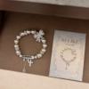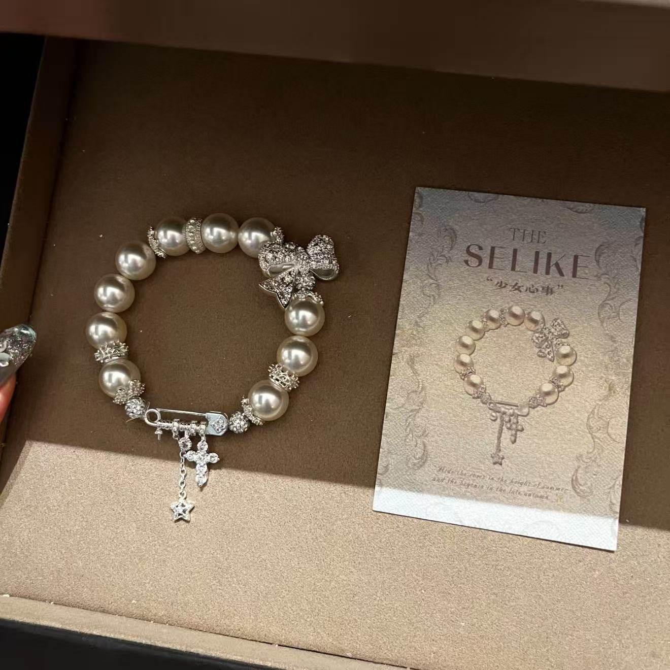 高级感白色蕾丝蝴蝶结手链女小众轻奢满钻别针扣十字架流星珠手串