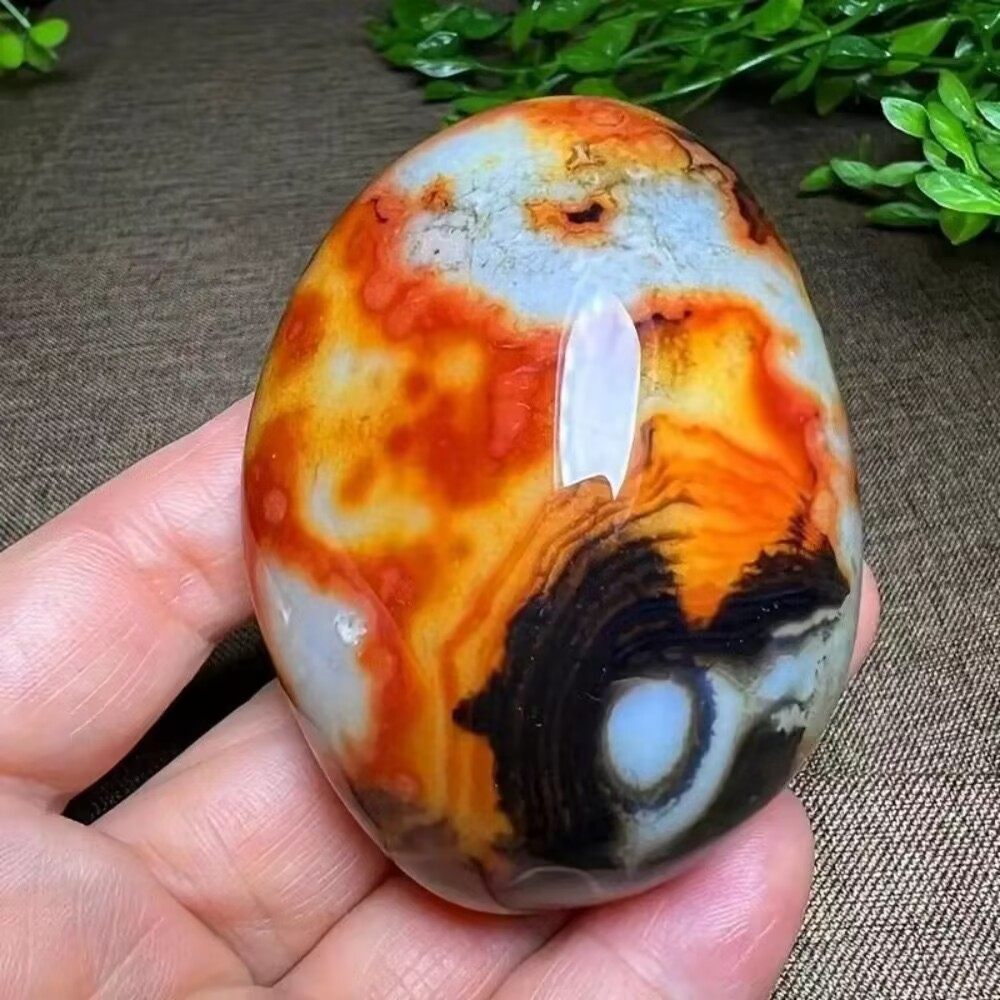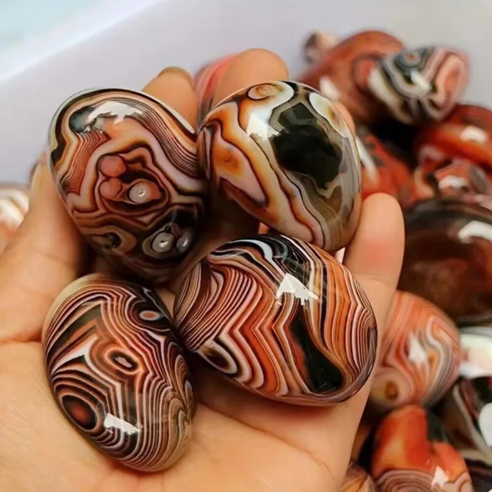 天然缠丝玛瑙手把件水晶原石玉石矿石红色石头摆件鱼缸客厅装饰品