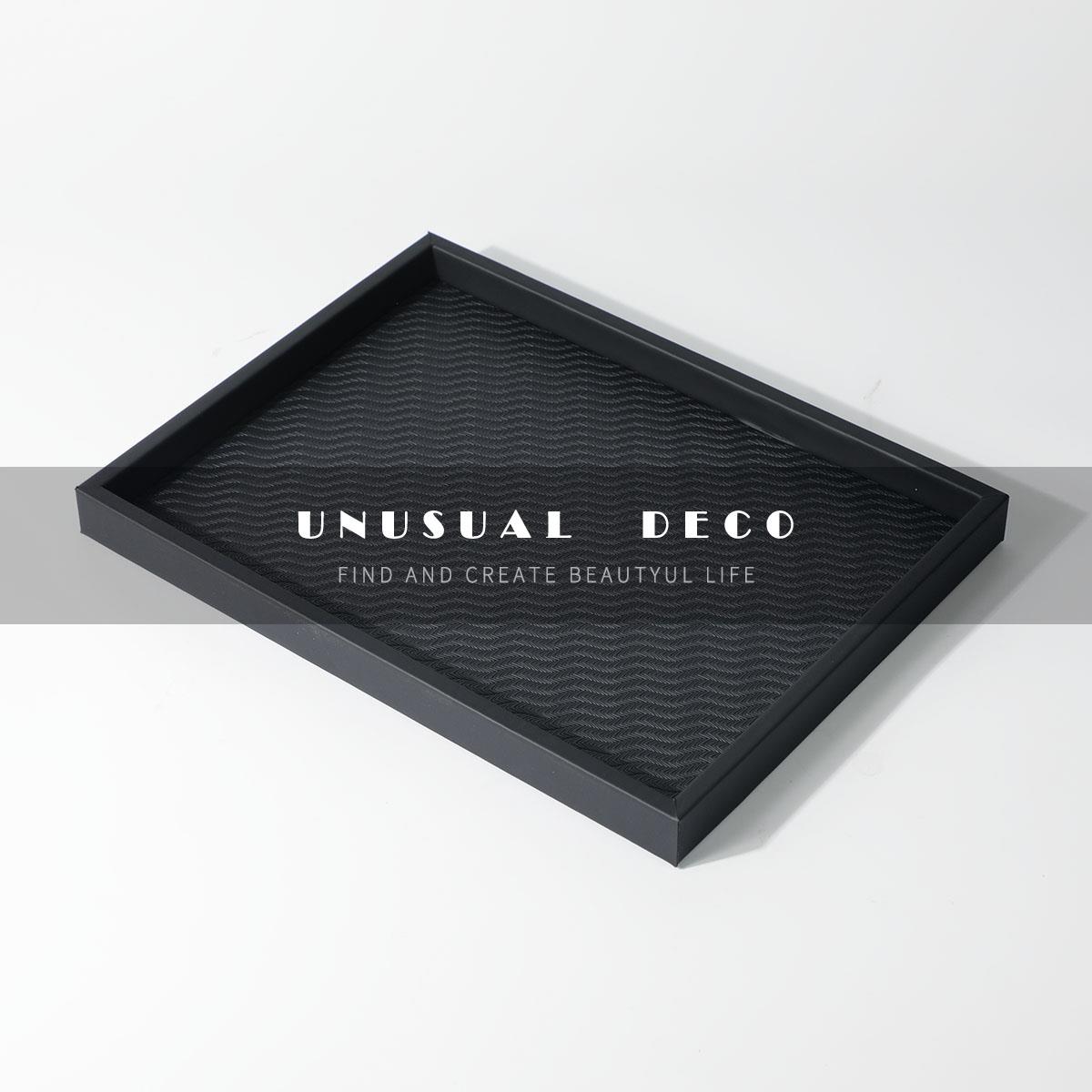 现代简约灰色皮质矩形轻奢桌面摆件 客厅卧室方形皮革装饰托盘