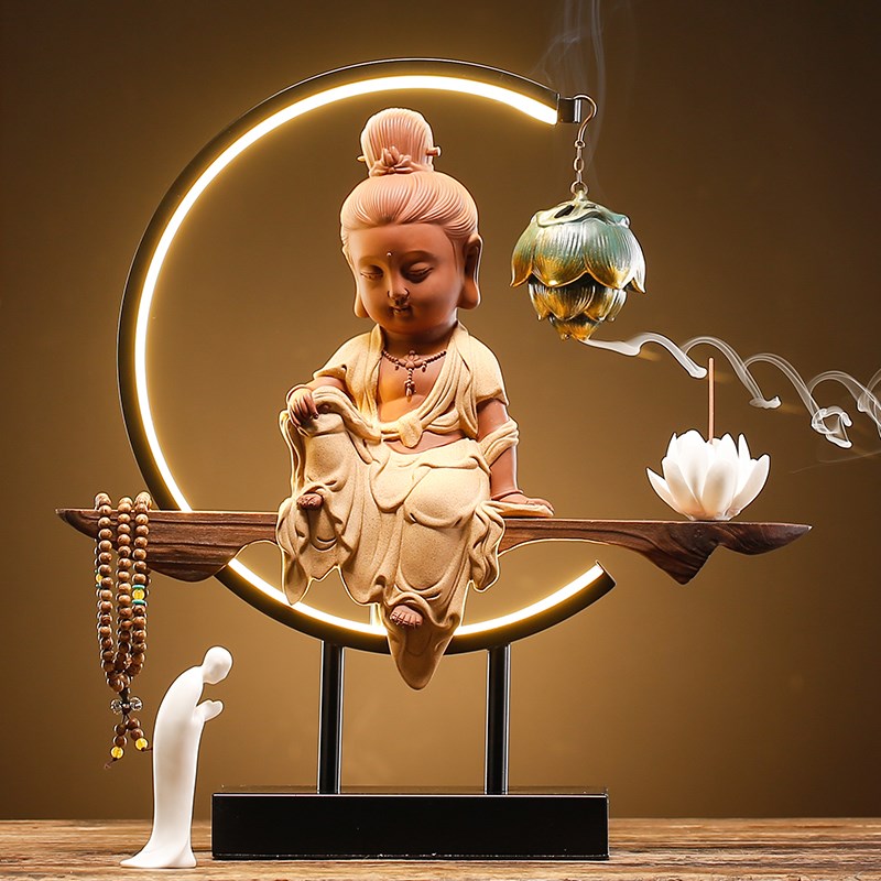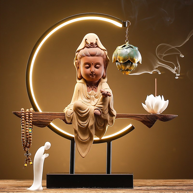 极速新中a式灯圈禅意摆件倒流香观音佛像创意家居桌面轻奢客厅招