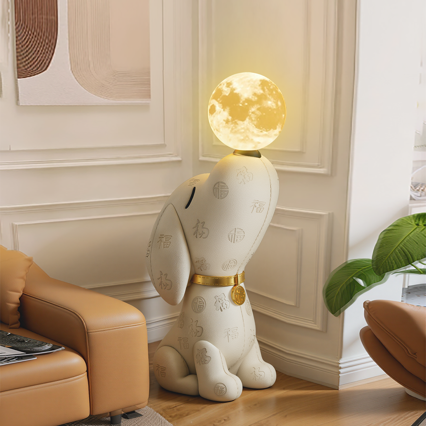 高档客厅电视柜旁装饰落地灯摆件乔迁礼物比格犬存钱罐蓝牙音响