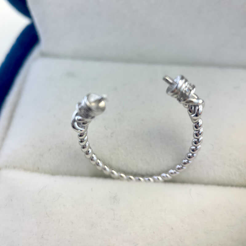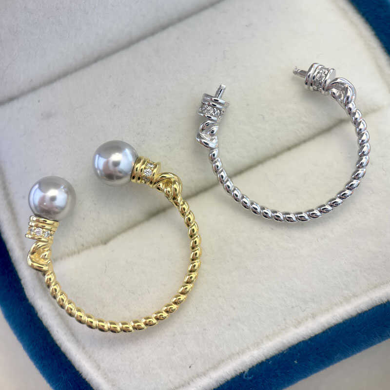 DIY珍珠配件 S925纯银锆石麻花双珠戒指空托配饰 简约气质款饰品