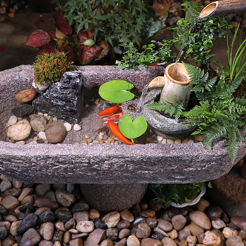 中式客厅流水鱼缸喷泉玄关落地水景D观石磨摆件民宿水池造景装饰