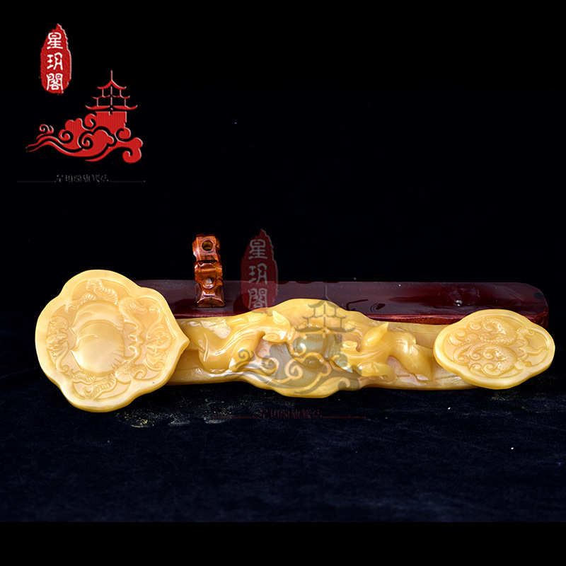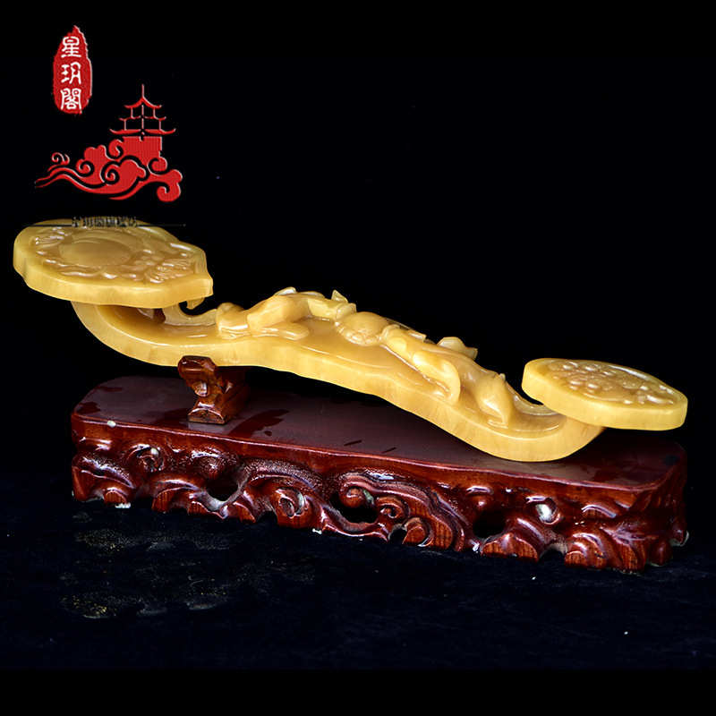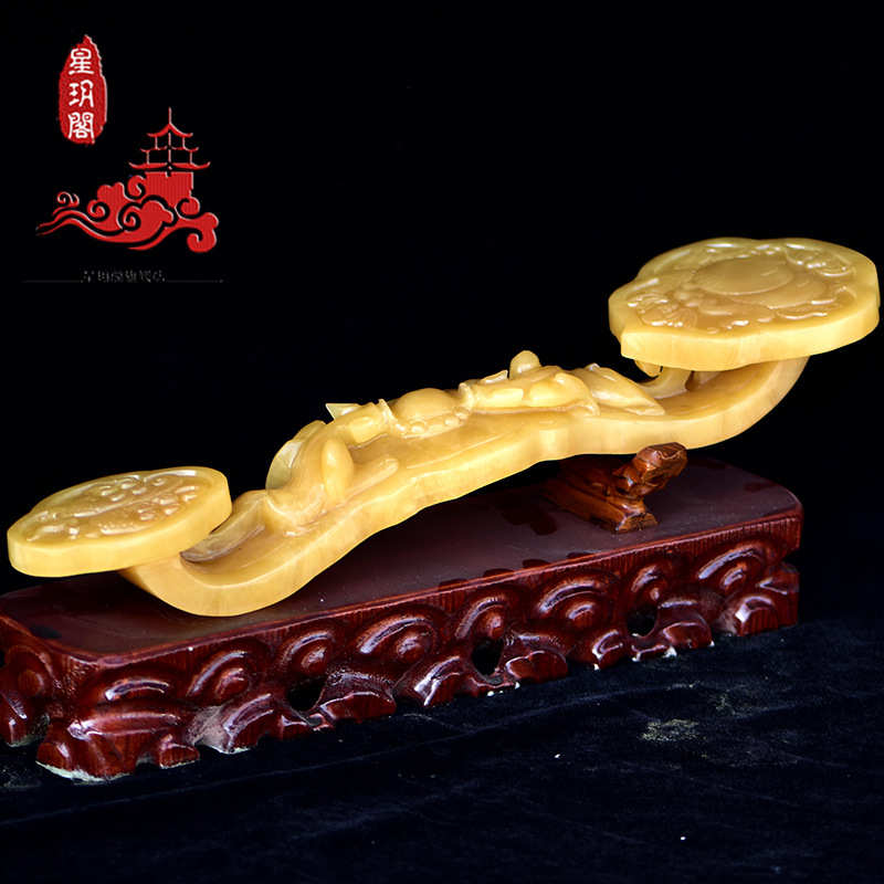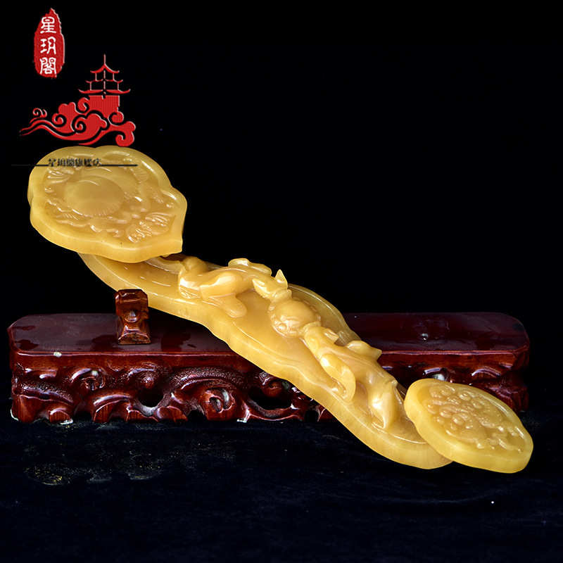 黄玉摆件玉如意米装饰品黄玉精雕玉石如意雕塑摆件玉器玉石