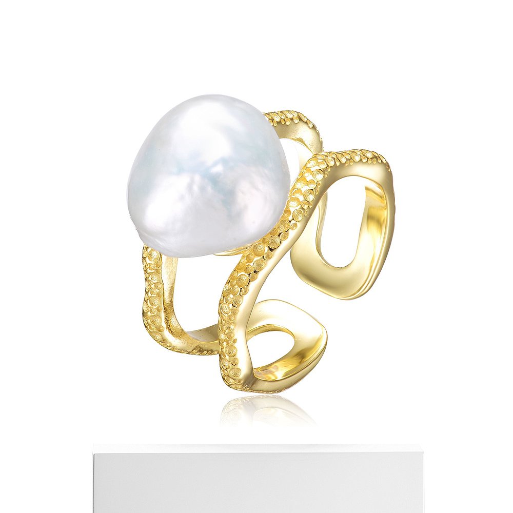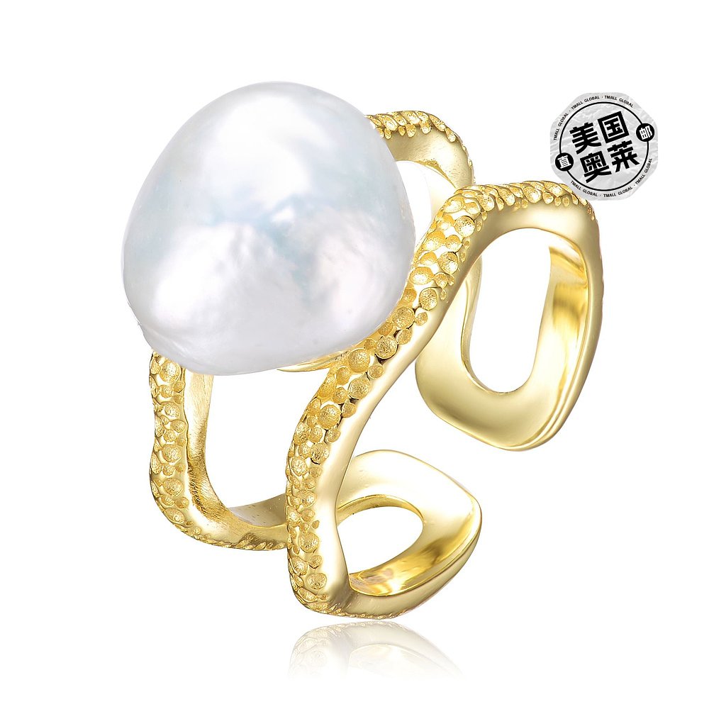 自营 genevive纯银镀金与真正的淡水珍珠当代戒指 - 金 美国奥莱