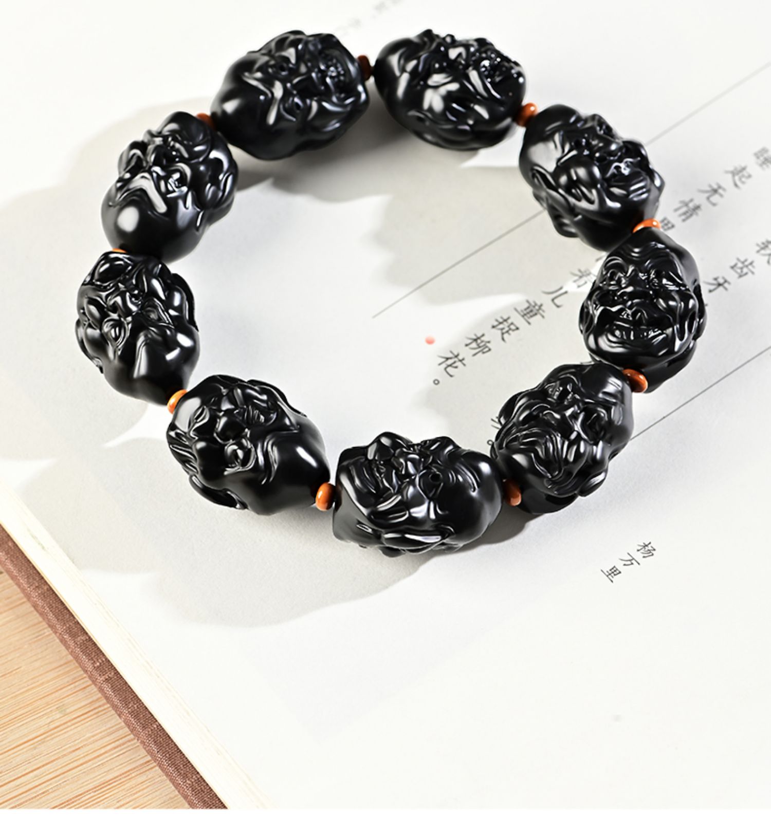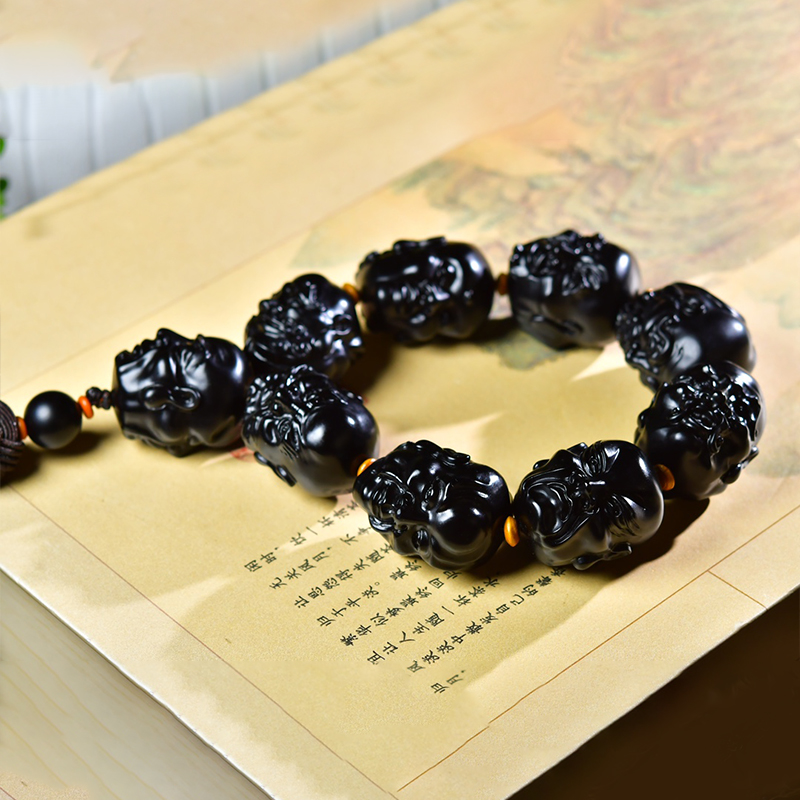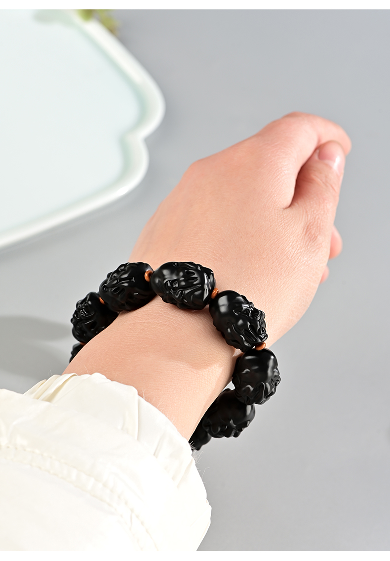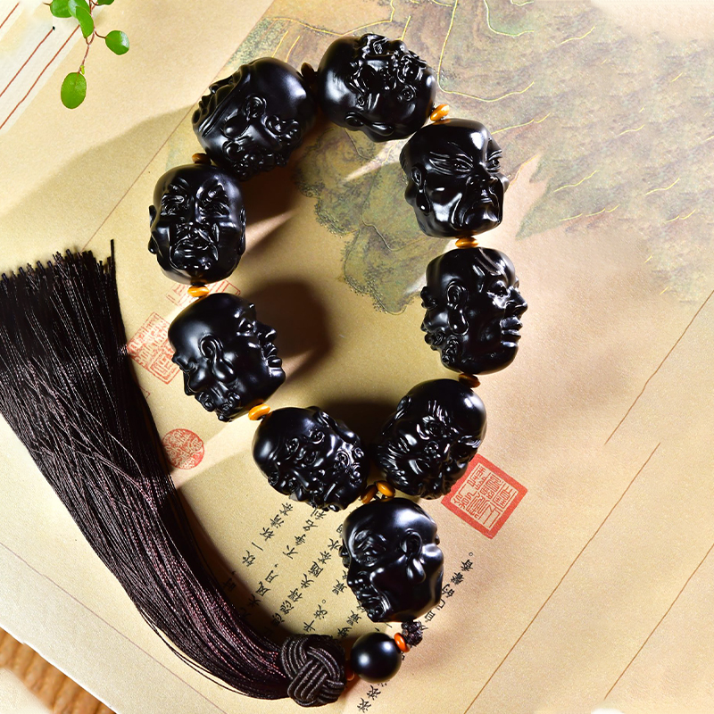 黑羊脂墨玉十八罗汉手串双面天然新疆和田玉罗汉头手链男文玩手持