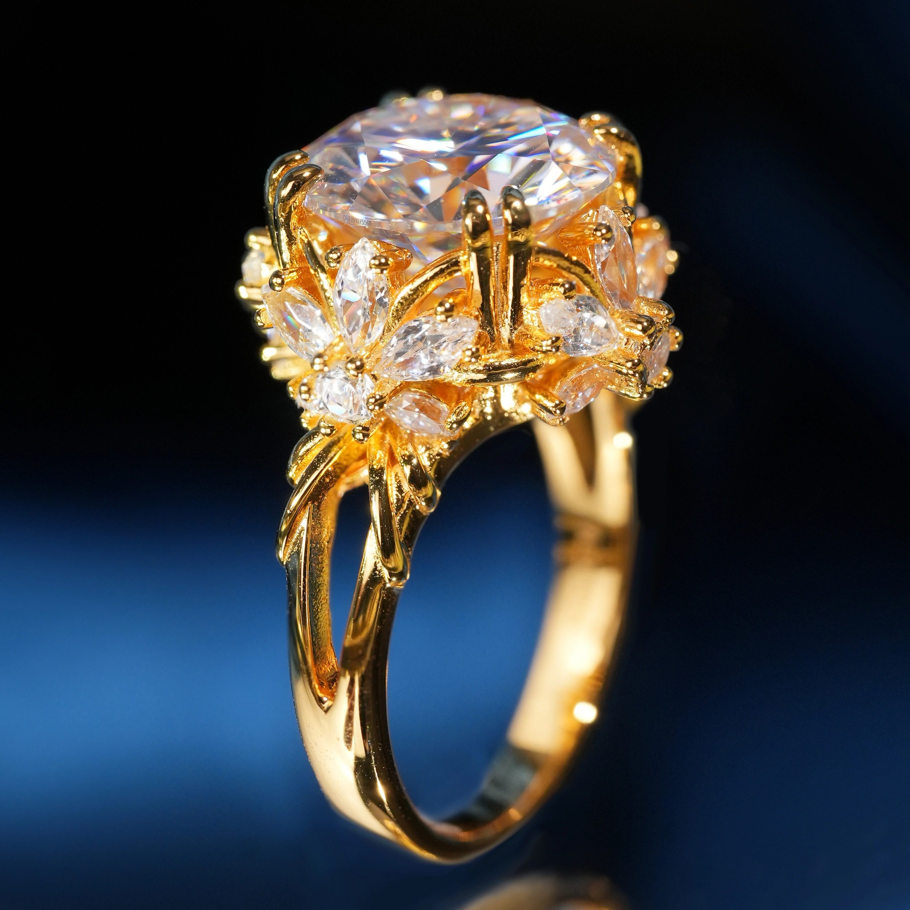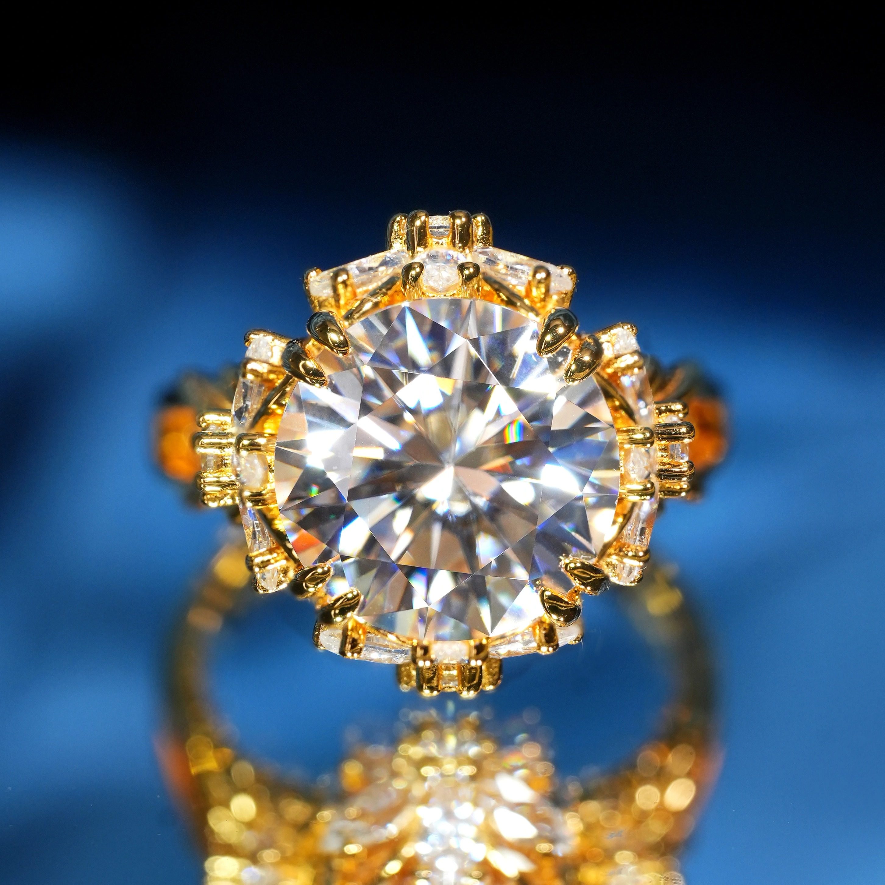 VISING珠宝5克拉金色莫桑钻石戒指求婚鸽子蛋钻戒925银