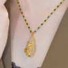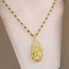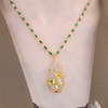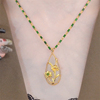 花开富贵冰透油糯水滴项链女时尚穿搭绿色竹节链毛衣链设计感配饰