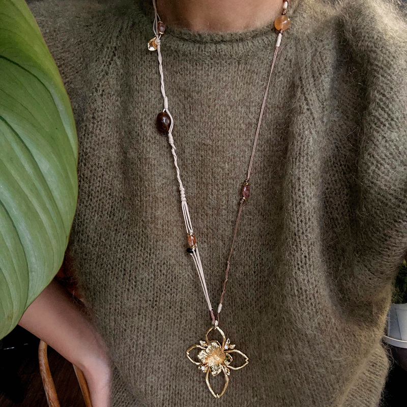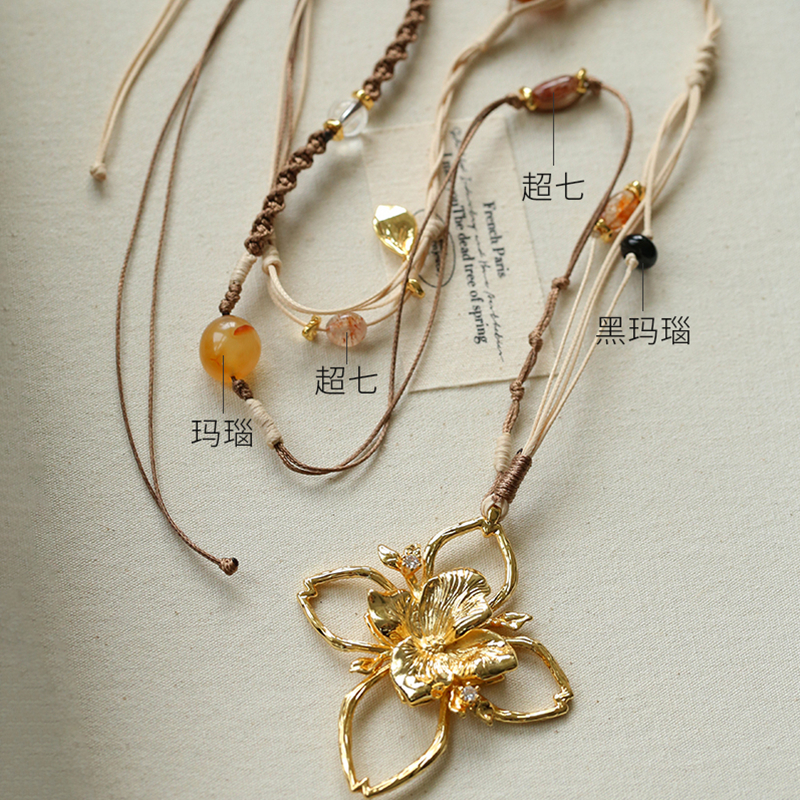 TU家法式复古编绳立体镂空花朵长款项链小众设计时髦高级毛衣链女