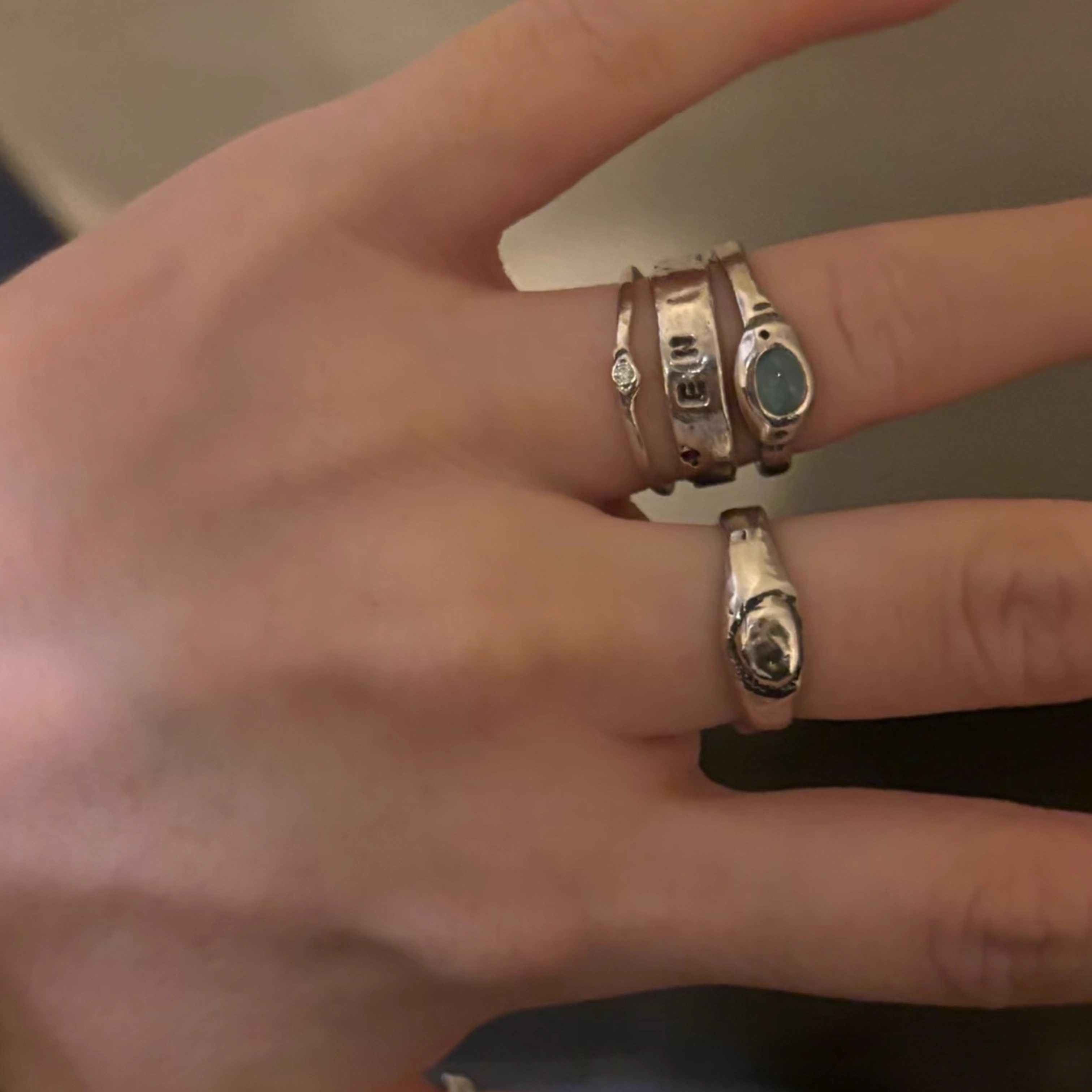 定制mars25韩国小众设计做旧925纯银镶钻ME戒指系列粉色杂色手绳