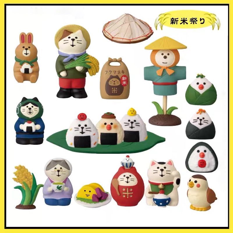 日式猫新米丰收季摆件潮玩礼品稻草人猫玩具DIY树脂工艺品小摆件