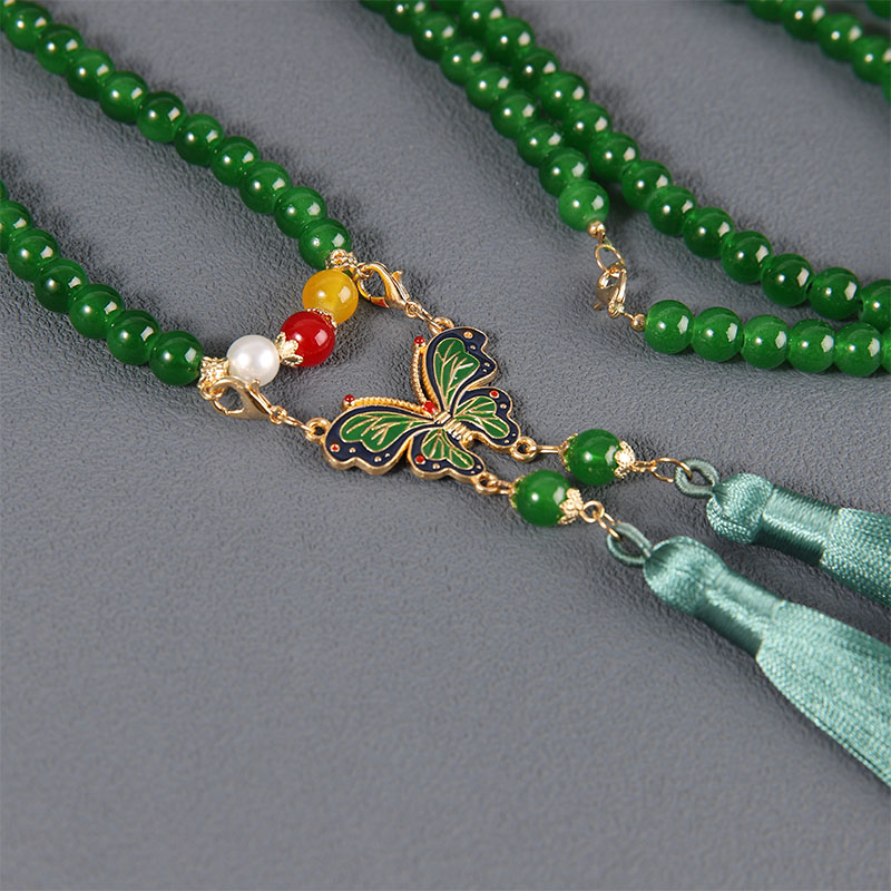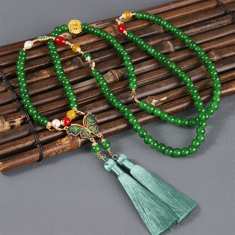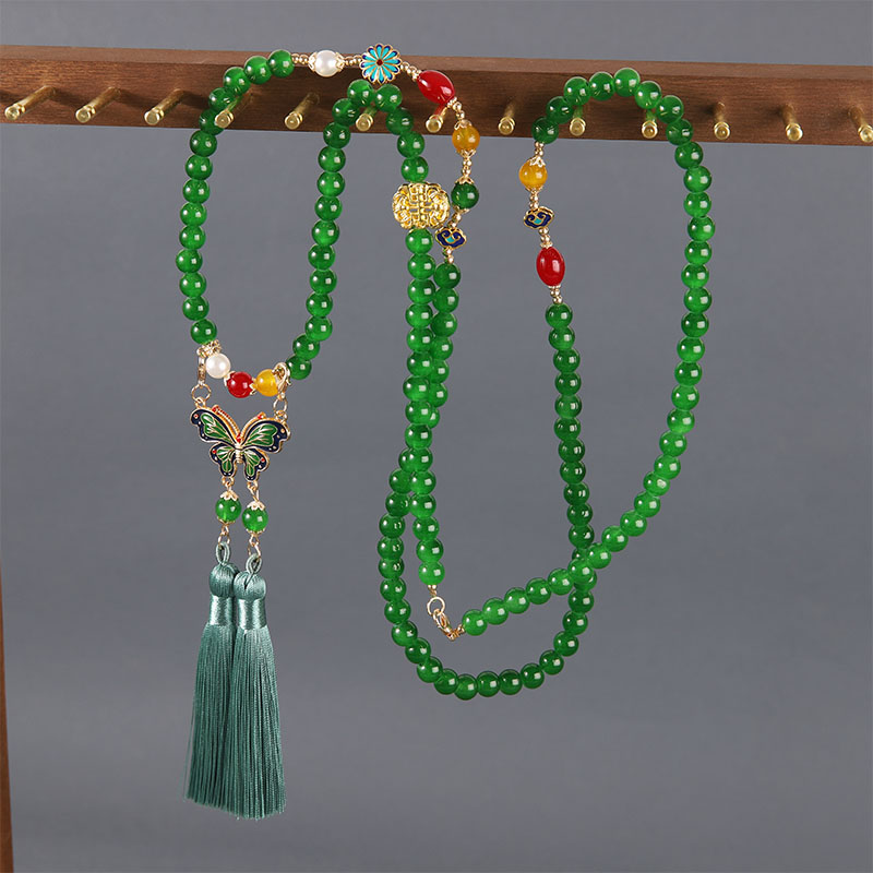国风玛瑙串珠项链女秋冬搭配长款毛衣链新中式汉服旗袍斜挎链配饰