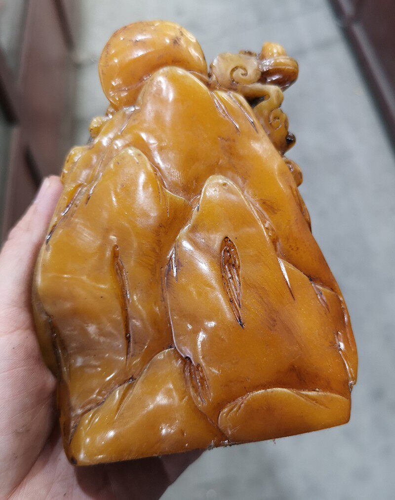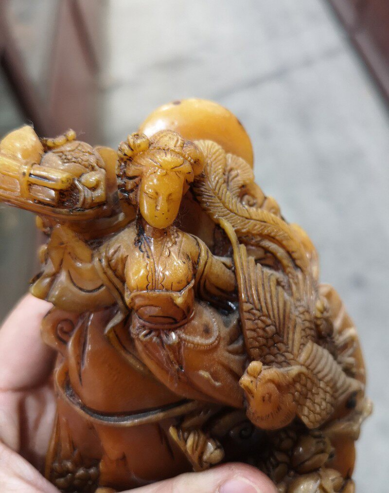 仿古石雕寿山石雕人物图 家居装饰工艺礼品 仿田黄石仙女献桃