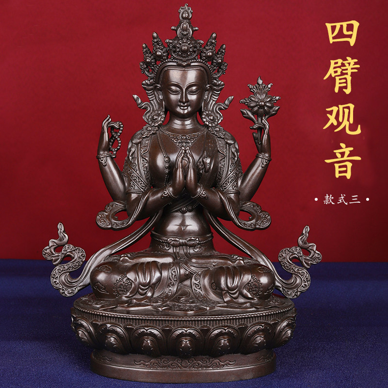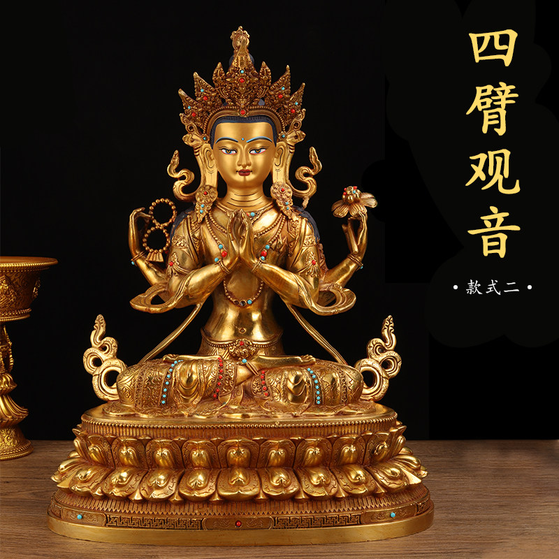 四臂观音佛像3寸5寸7寸10寸15/20寸菩萨彩绘鎏金藏传密宗供奉摆件