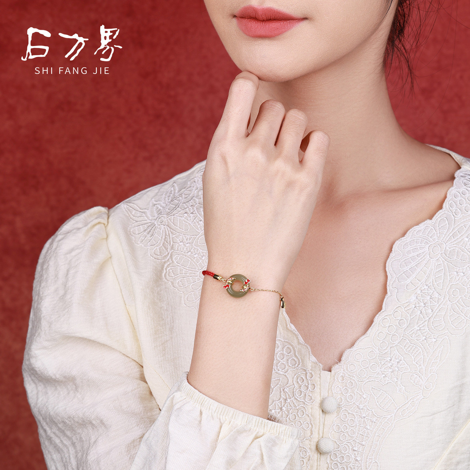 锦鲤平安扣手链红色手绳女天然和田玉编织纯银本命年手链生日礼物