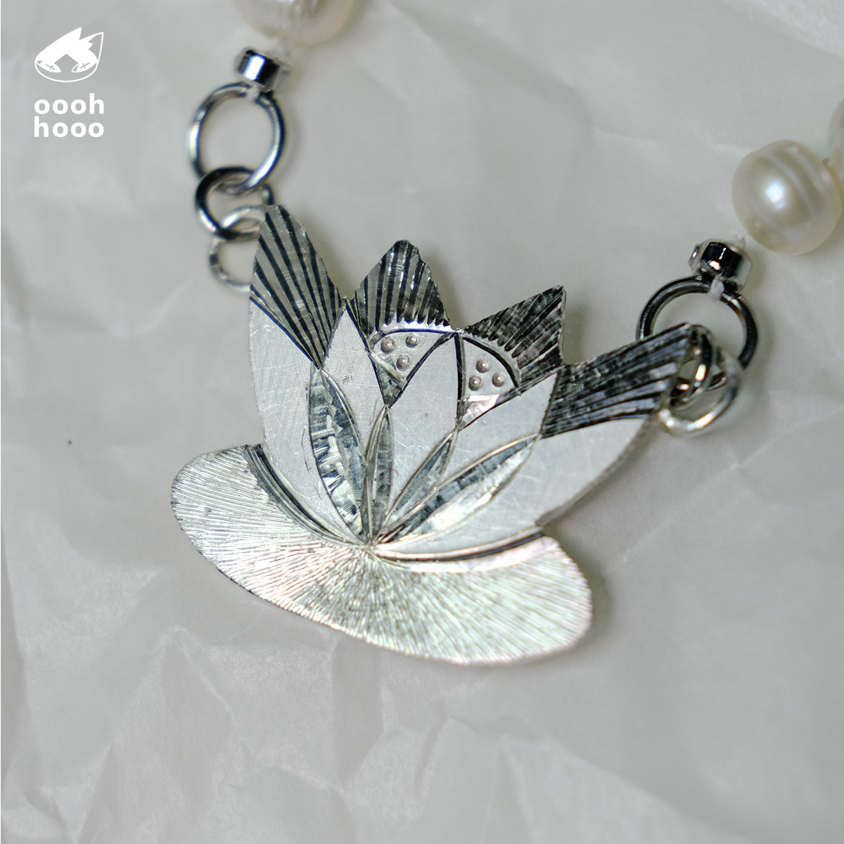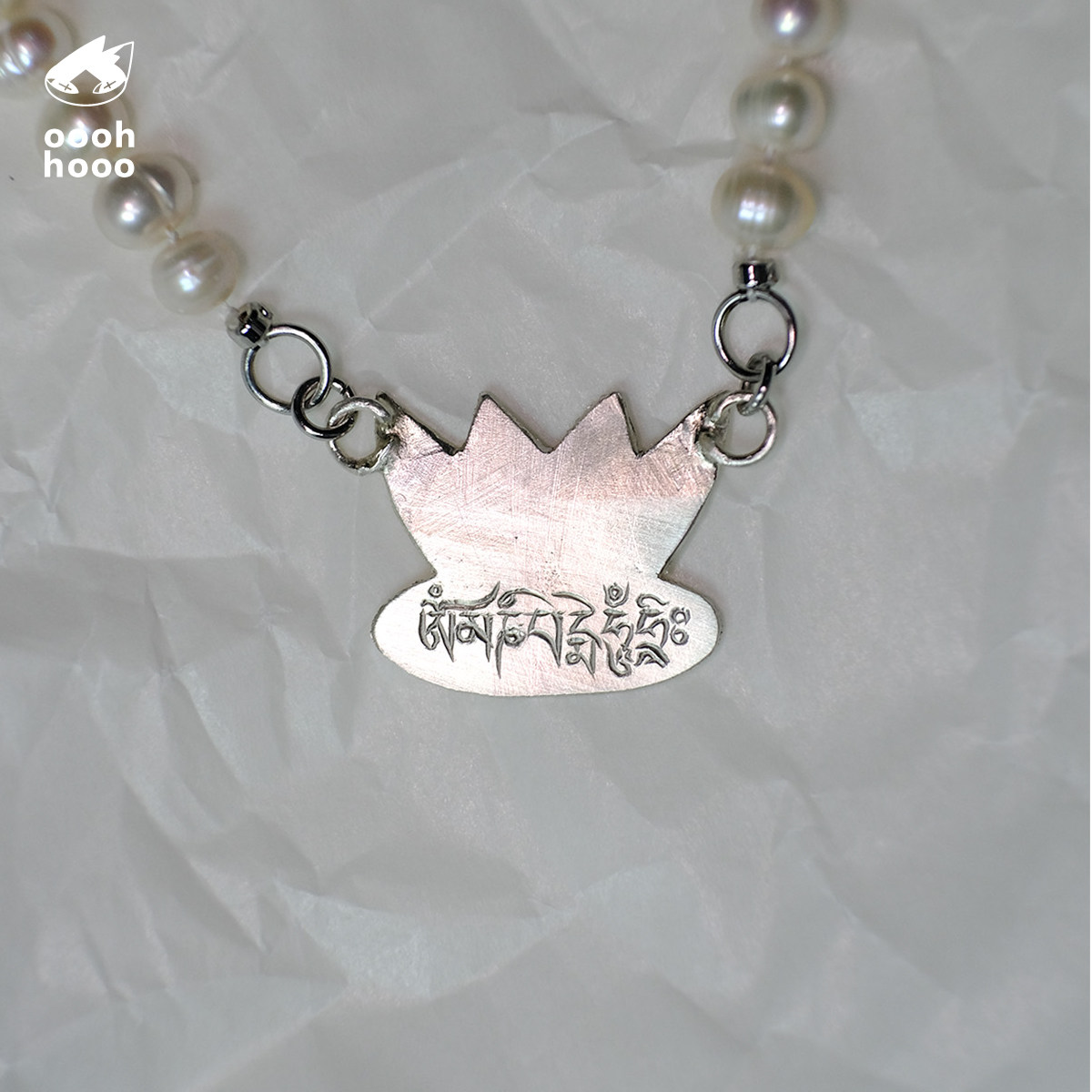 ooohhooo手作莲花六字真言吊坠s925银项坠淡水珍珠项链原创设计