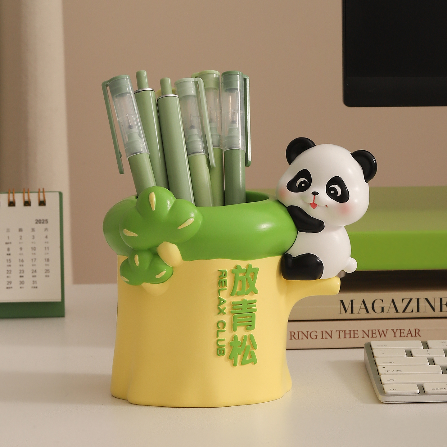 创意熊猫文创纪念品笔筒摆件办公室桌面情绪稳定装饰生日礼物实用