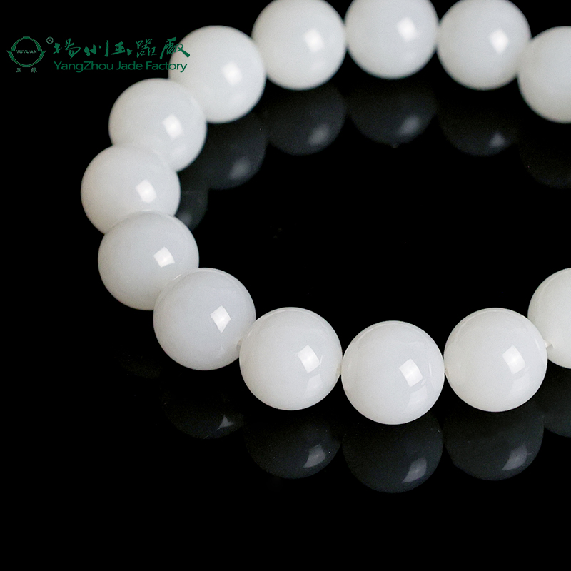 玉缘和田玉新疆和田白玉山料圆珠手串链玉质细腻白度好13mm男士