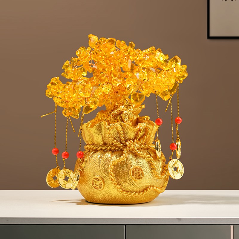 高级感礼物水晶摇钱发财树招财摆件酒柜家居客厅乔迁新居开业礼品