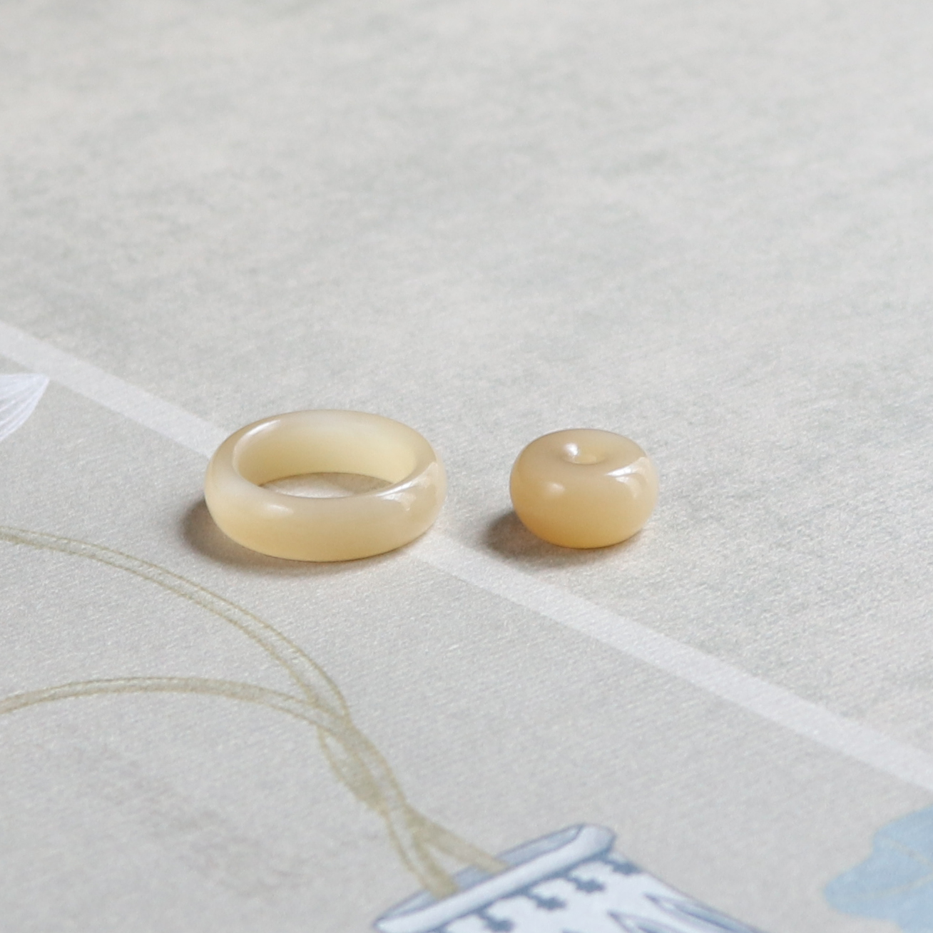 14号糖玉平安戒天然和田玉黄糖戒指子母扣吊坠圆形玉石指环套戒