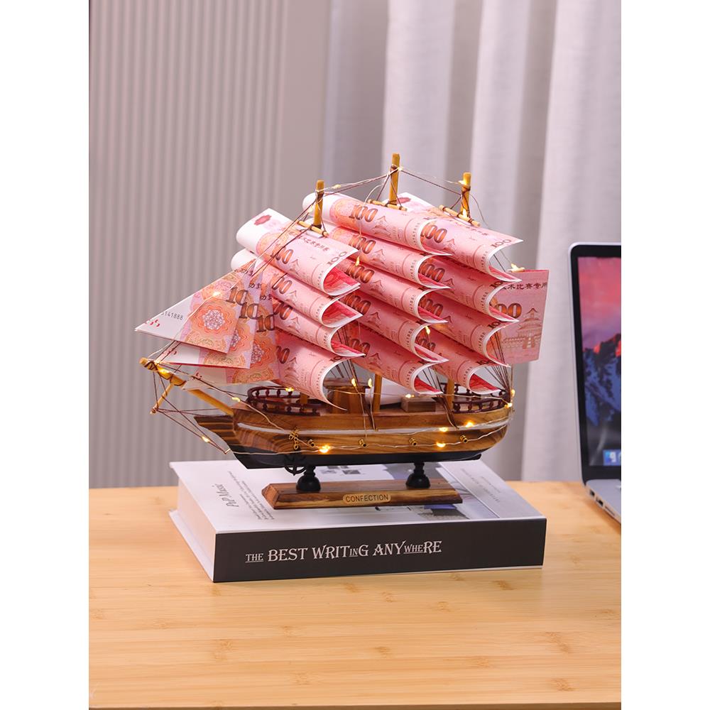 手工一帆风顺帆船摆件diy有钱花花船模型高考礼盒生日礼物装饰品