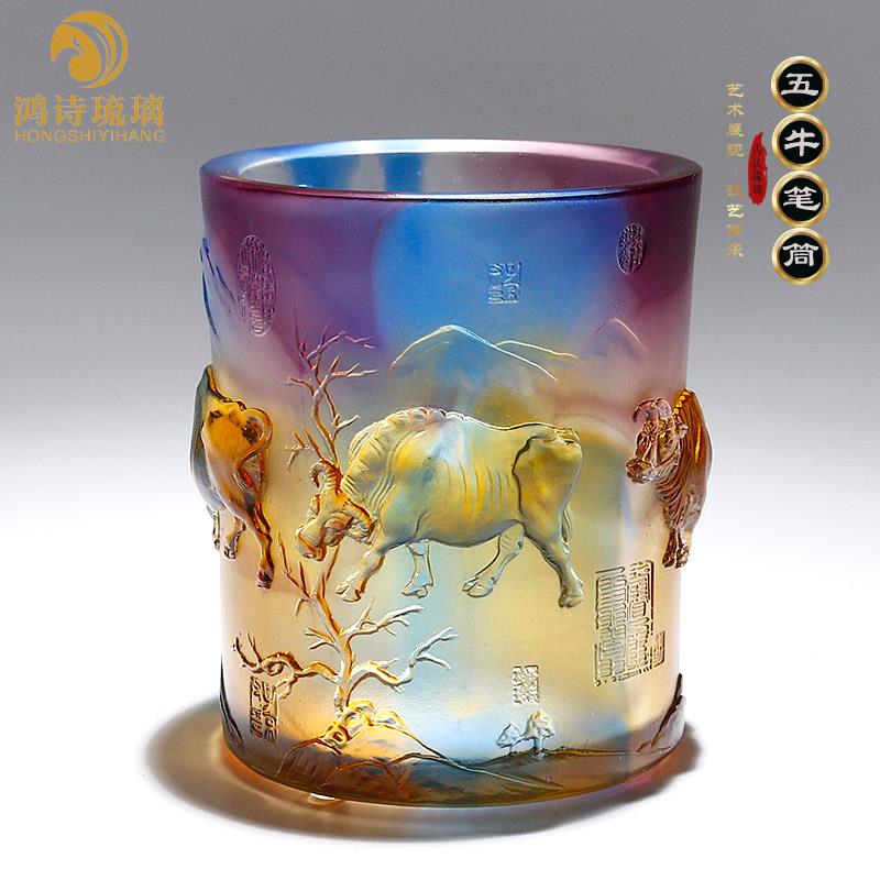 琉璃生肖摆件五福牛笔筒毕业送老师领导办公室桌面生日礼物工艺品