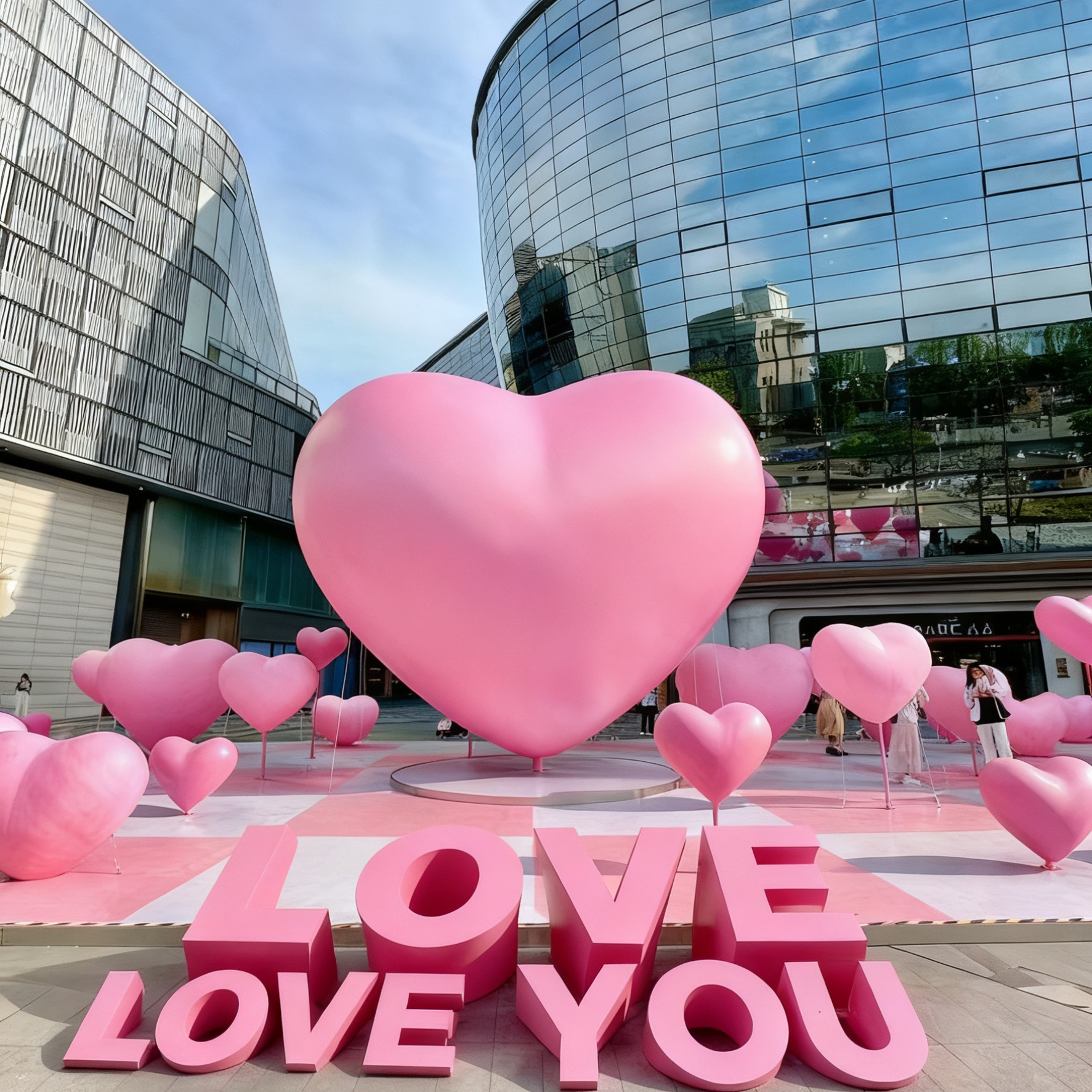 户外立体爱心雕塑玻璃钢摆件七夕情人节商场景区店铺网红打卡拍照