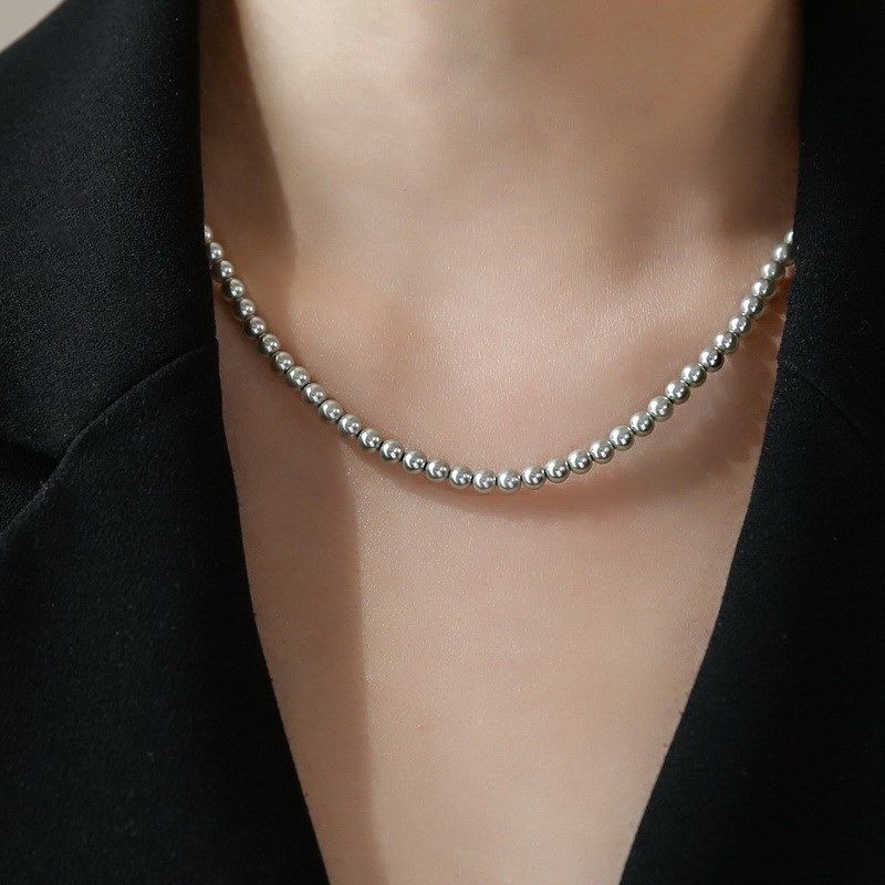 轻奢高级感小众h真多麻银灰色珍珠项链女清冷灰色复古锁骨链颈链
