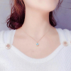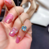 925纯银镶嵌天然巴西天空蓝托帕石吊坠女18K金蓝色宝石锁骨链气质