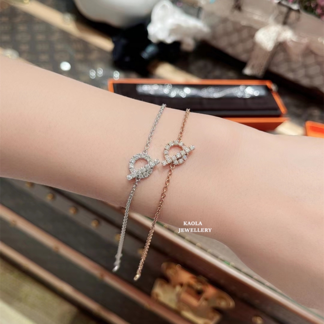 法国小Q钻石手链女轻奢小众玫瑰金纯银925满钻猪鼻子手环手镯个性