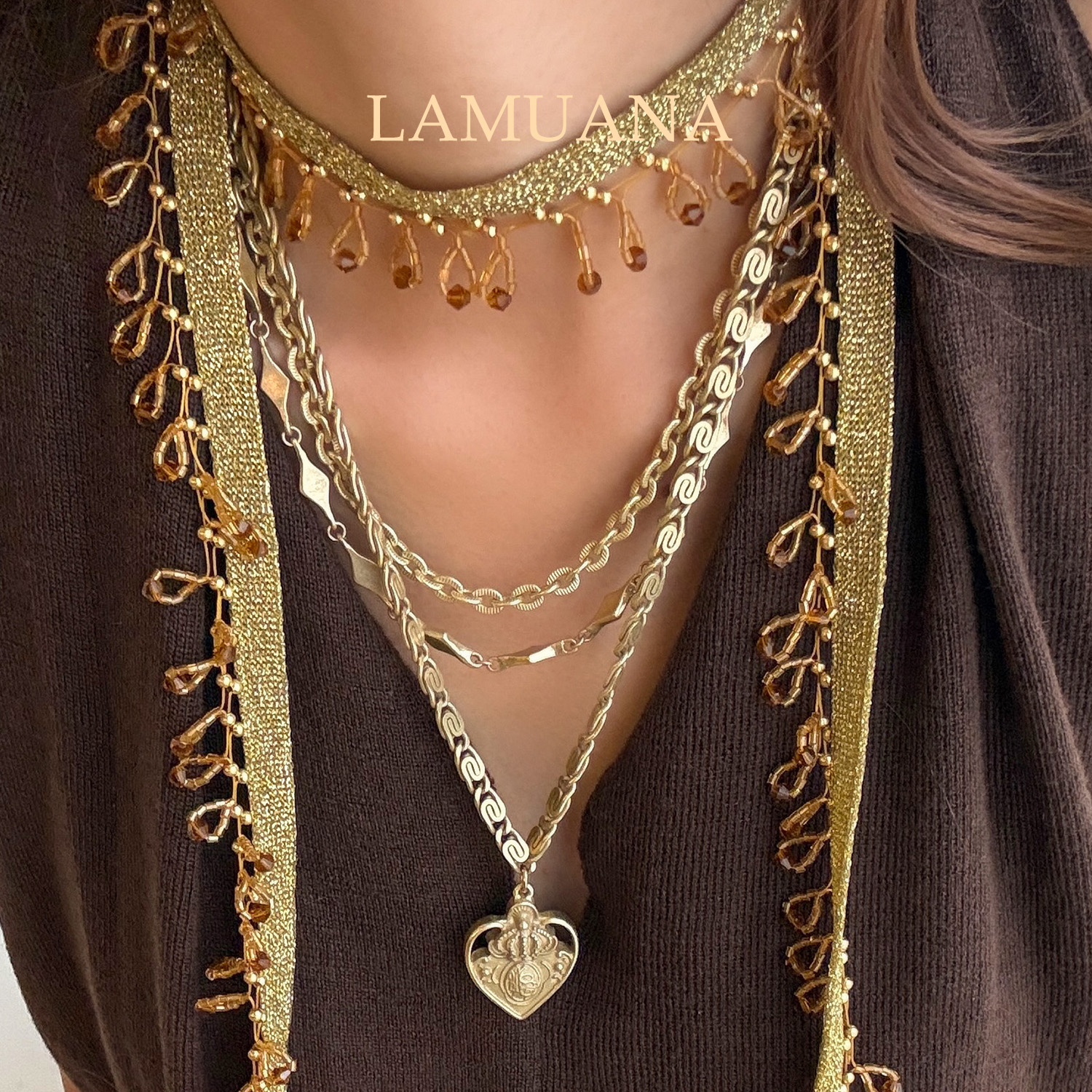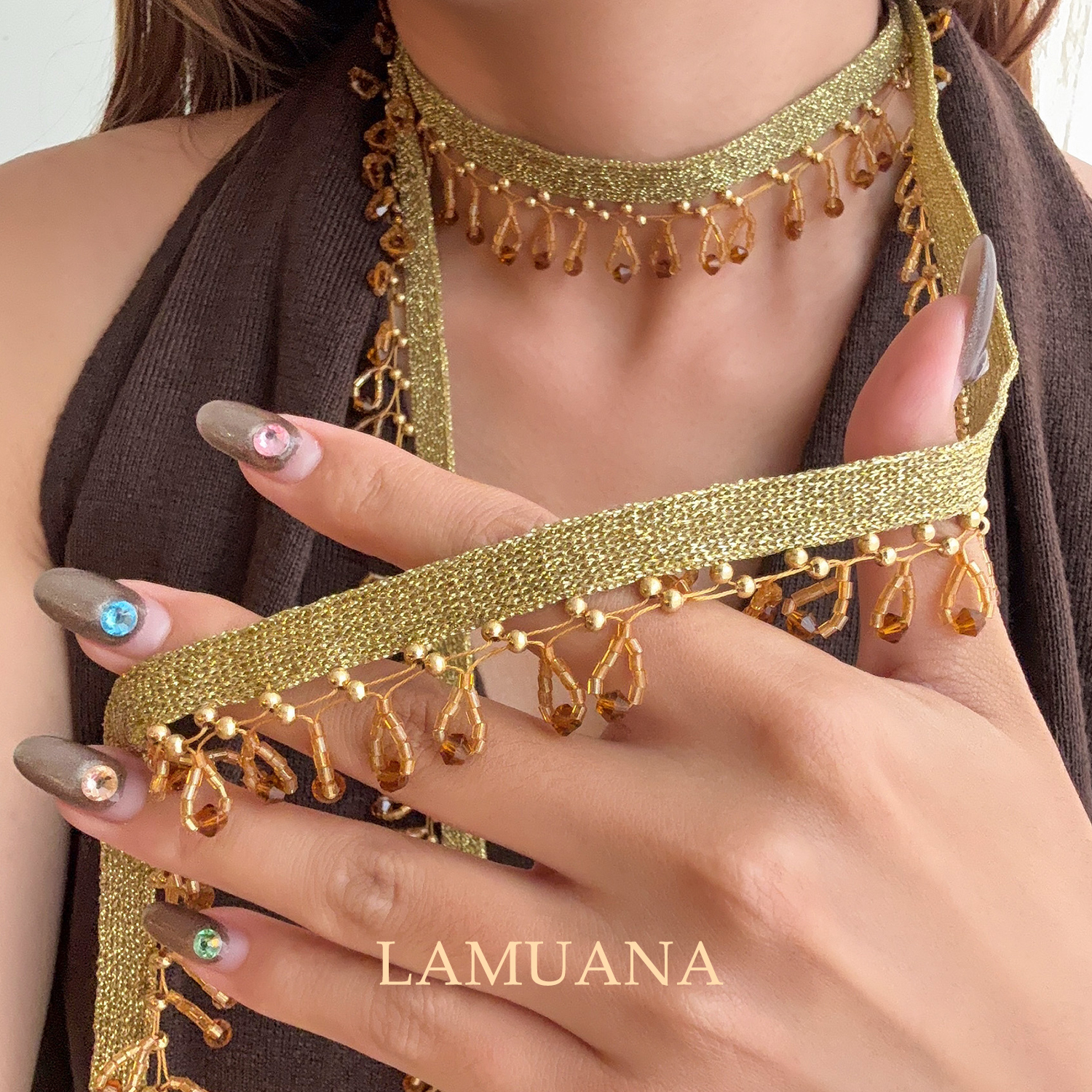 LAMUANA金线编织蕾丝流苏项链小众设计感长款细条毛衣链颈链90210
