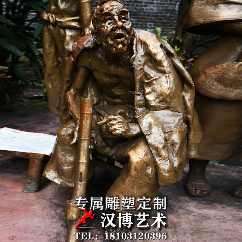 仿铜玻璃钢民俗文化老汉抽烟主题人物雕像户外城市广场商业街雕塑