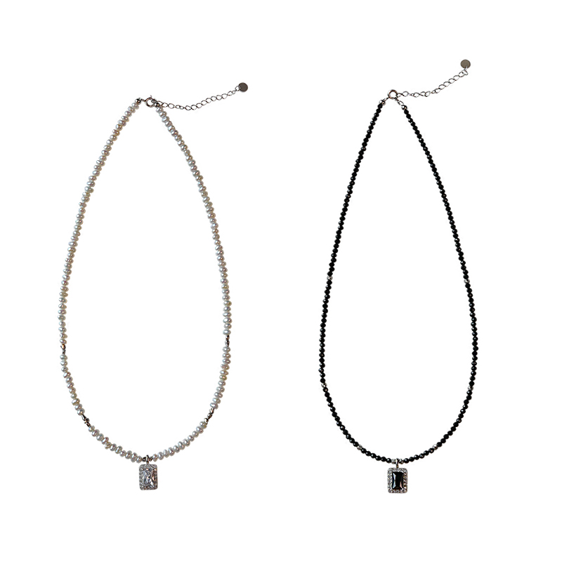 TYUSHA天然珍珠方牌项链爆闪锆石高级感轻奢叠戴锁骨链毛衣链女