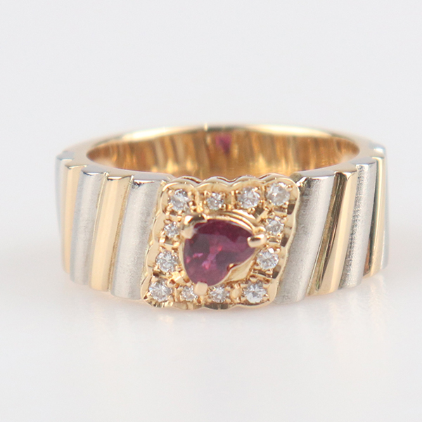 【自营】中古95新心形红宝石钻石拼色戒指