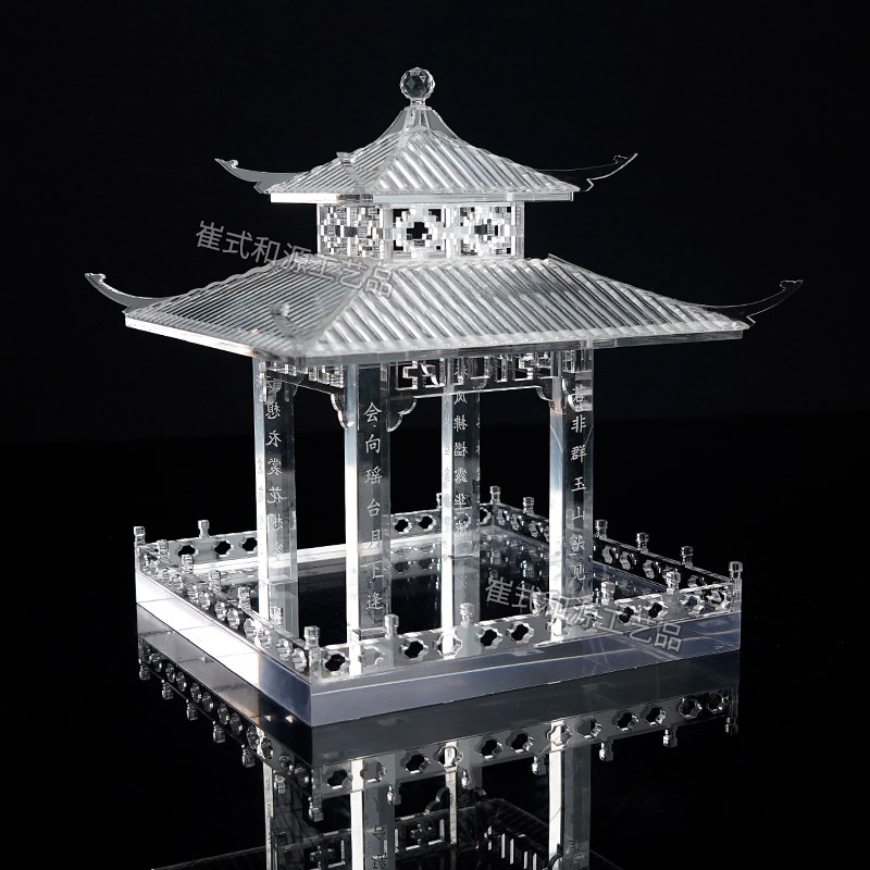 亚克力新中式透明凉亭阁楼建筑模型摆件房子古建筑屋檐装饰软装