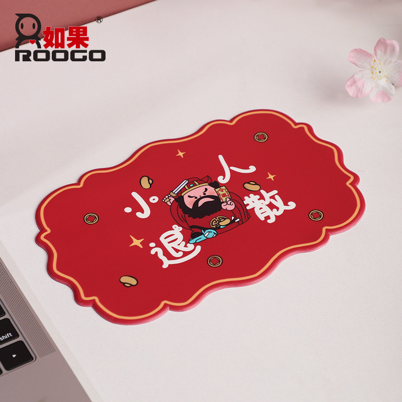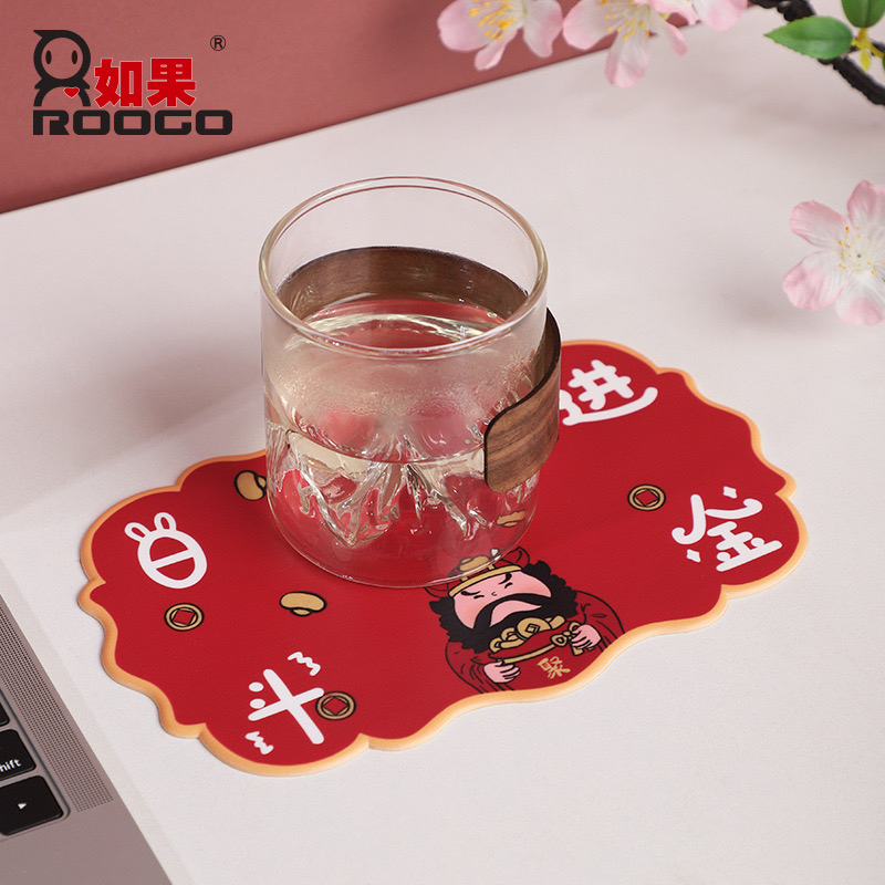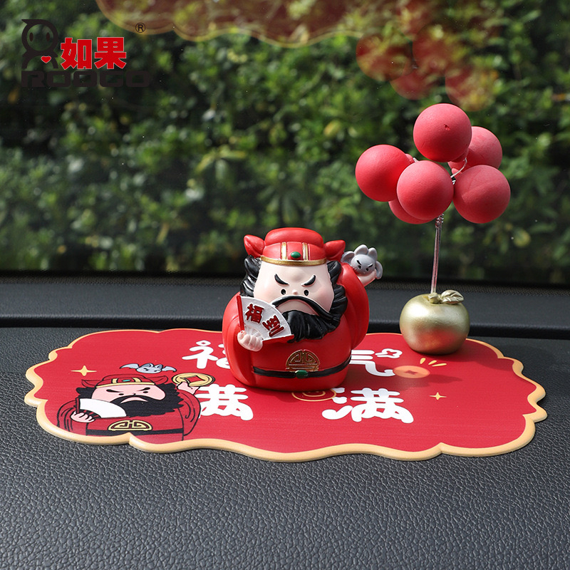 国风钟馗车载红色喜庆软胶防滑垫杯垫餐垫汽车中控装饰用品车垫