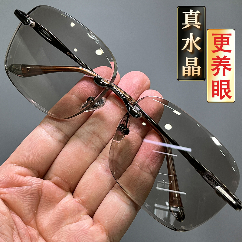 水晶眼镜冰糖色水晶石镜石头眼镜太阳镜精选东海老料润目养眼高清