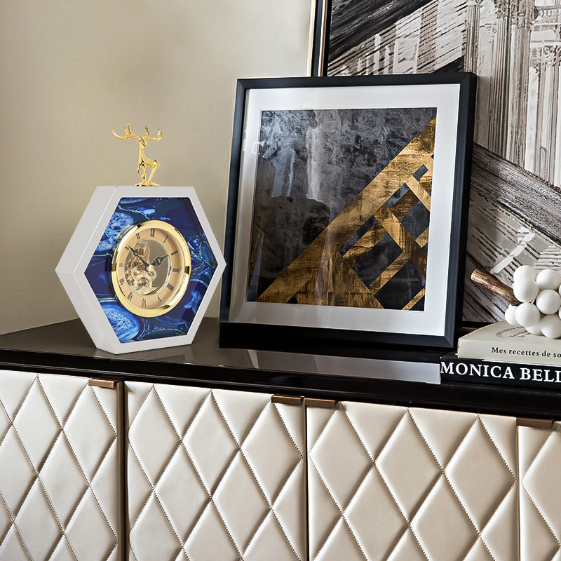 极速欧式轻奢金色时钟q桌面摆件简约时尚精美铁艺摆件防锈防潮客
