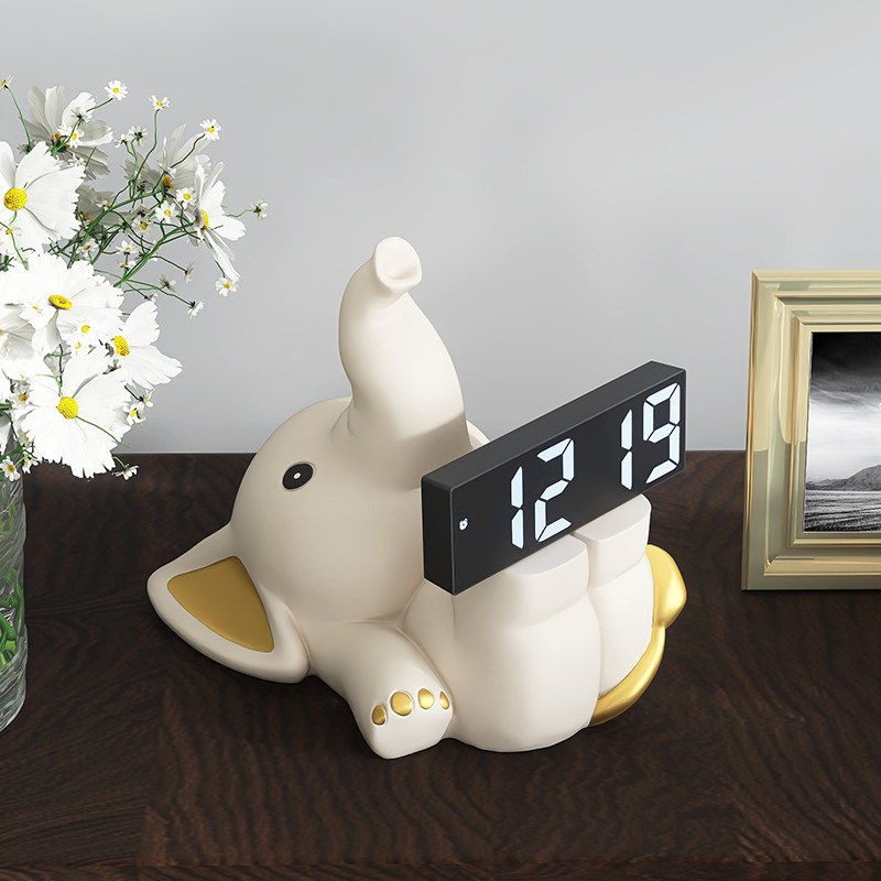 可爱卡通时钟摆件客厅玄关卧室床头钟表台式摆放式桌面Z智能电子