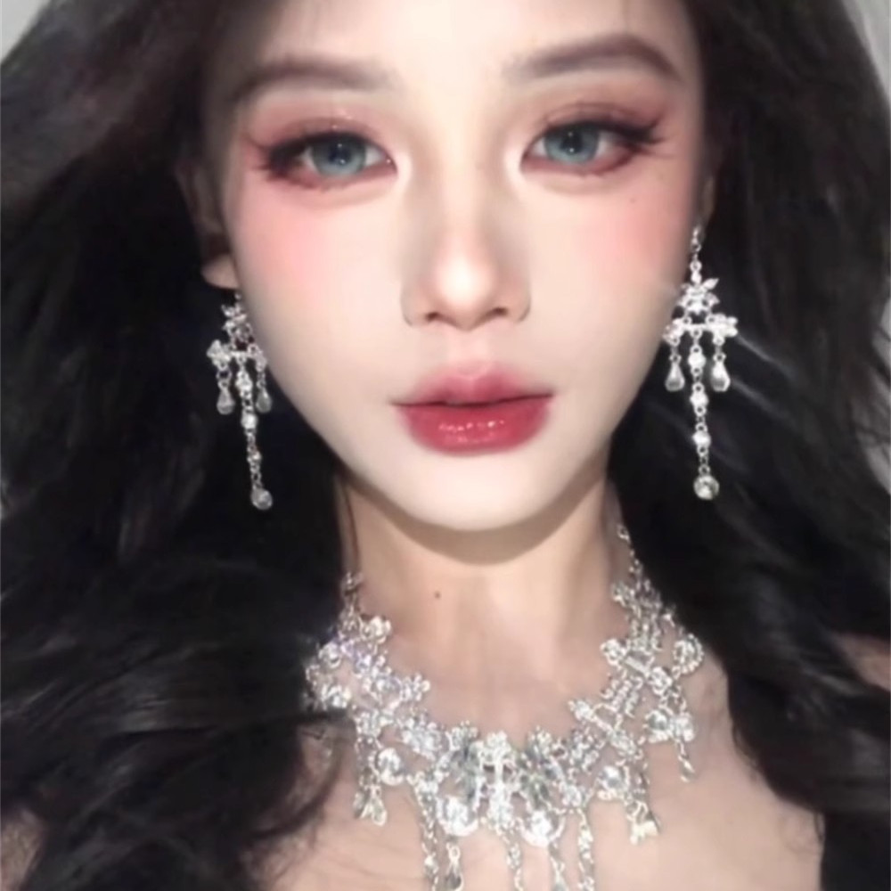 钻石晚礼服项链夸张轻奢小众高级感颈链结婚婚纱锁骨链主持人配饰
