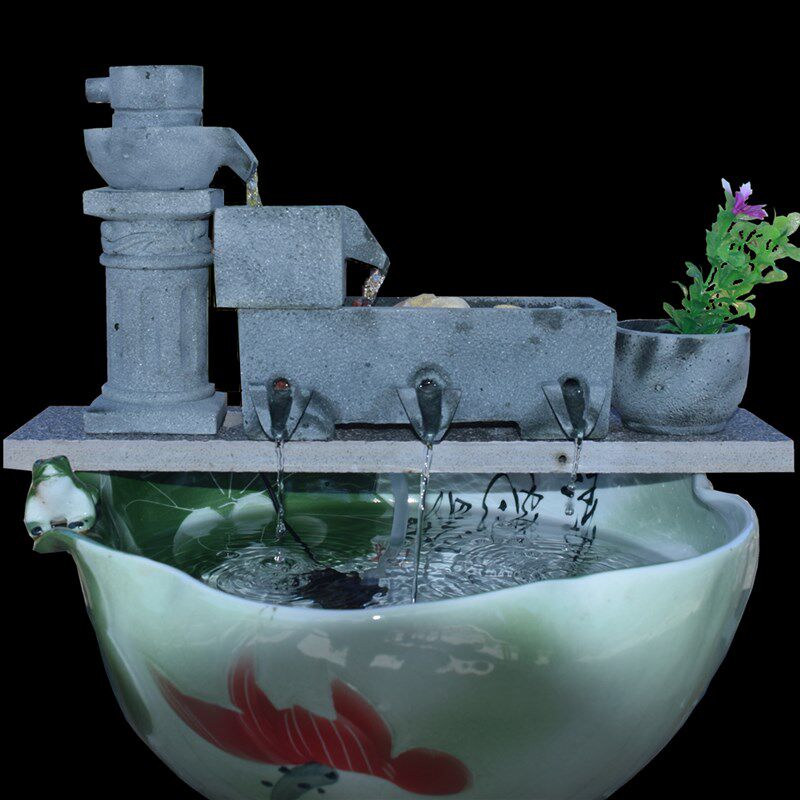 养鱼增氧过滤器陶瓷鱼缸流u水生财创意摆件室内外鱼池循环流水造